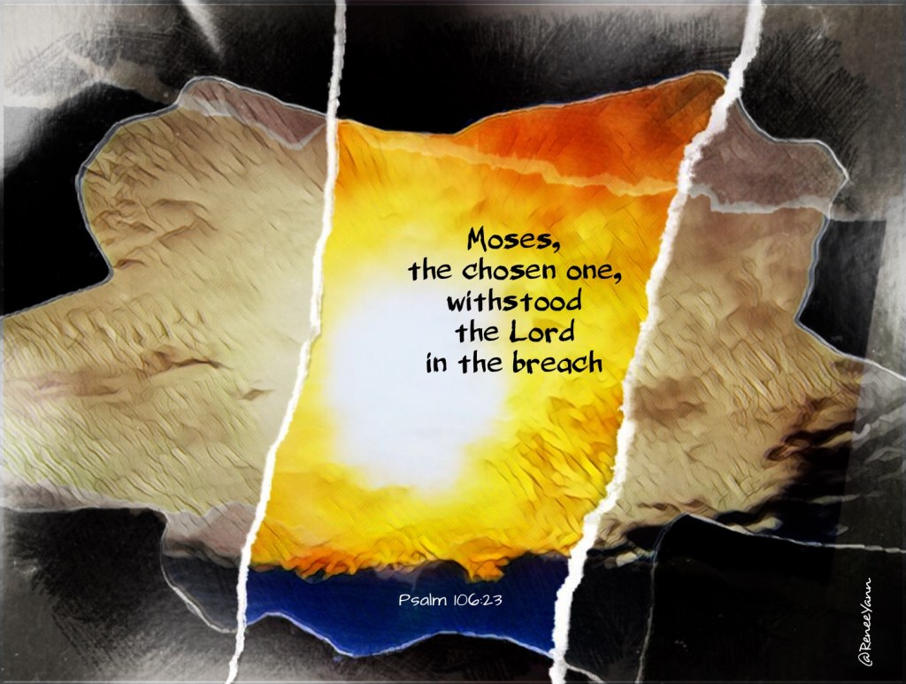 But Moses, because of his unique relationship with God, has been cleared of those blockages. He opens up – breaches – the surface to help the people connect with God’s power.